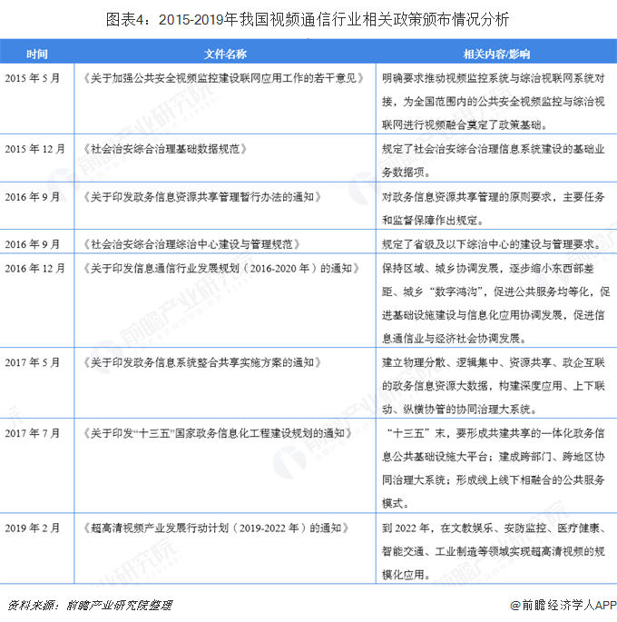 《“十三五”国家战略性新兴产业发展规划》、《信息通信行业发展规划(2016-2020年)》等政策的出台为我国视频通信行业尤其是高清视频通信行业提供了良好的政策环境;《关于加强公共安全视频监控建设联网应用工作的若干意见》等政策的出台有利于高清视频通信行业在综合领域业务的发展。