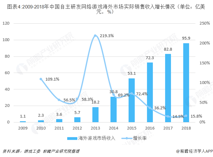 2018年我国游戏市场实际销售收入达到2144.4亿元,同比增长5.3%。其中移动游戏市场所做贡献最大,实际销售收入占整个游戏市场的62.5%。年初的《恋与制作人》《旅行青蛙》等游戏吸引了我国众多女性用户,随着游戏研发者对女性消费者的深入了解,未来将会有更多针对女性的游戏被开发出来,女性游戏市场潜力将得到进一步释放。近几年我国自主研发的网络游戏在海外市场的销售收入稳定增长,海外游戏市场已成为我国游戏企业重要的收入来源。