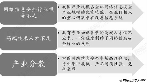 由于我国信息安全产业整体发展程度有限,产业结构分散,导致我国信息安全企业在新产品研发投入和高端人才吸引方面力度较为有限。