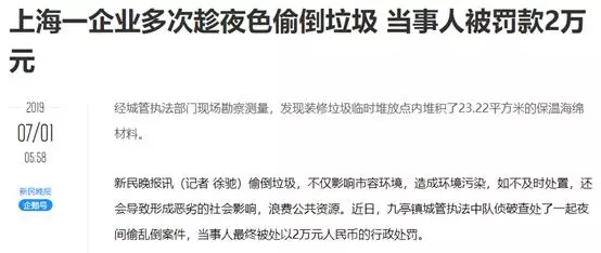 最近就有上海的一家企业不信邪,以为趁着夜色偷倒垃圾不会被发现,上海的城管执法部门利用开源网络找到企业的关键信息,通过层层抽丝剥茧,最终天网恢恢,疏而不漏,找到夜间偷乱倒案件的涉案企业,当事人最终被处以2万元人民币的行政处罚。(给破案民警加鸡腿