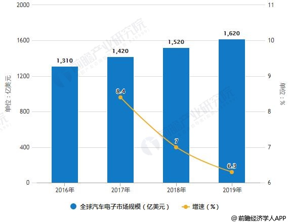 2016-2019年全球汽车电子市场规模统计及增长可以·情况预测