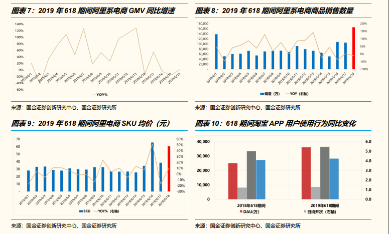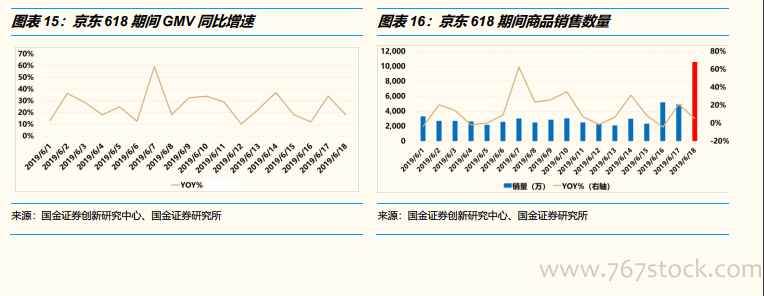 京东 618 整体状况:主场略有复苏。根据国金口径,京东 2019 年 618 期间 GMV 同比去年增 23%。京东618 期间的增量主要来自于下沉市场增长(三线及以下用户),通过地域性补贴活动拉新低线用户。