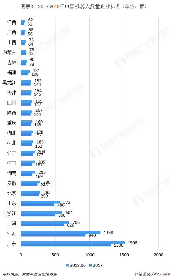 广东、江苏机器人企业破千家,竞争激烈