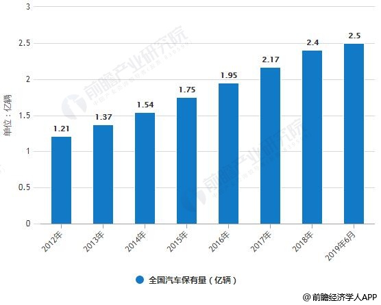 据统计,截至2019年6月全国汽车保有量达2.5亿辆,占机动车总量的74.58%,其中私家车(以个人名义登记的小型载客汽车和微型载客汽车)保有量达1.98亿辆。2019年上半年,汽车新注册登记量为1242万辆,同比减少139万辆。