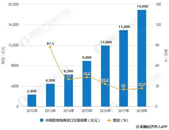 来自第三方的数据显示,2018年包括B2B、B2C、C2C和O2O等模式在内的中国进口跨境电商交易规模达1.9万亿元,同比增长26.7%。截至2018年年底,我国经常进行跨境网购的用户达8850万人,同比增长34%。两项数据都保持着高速增长。