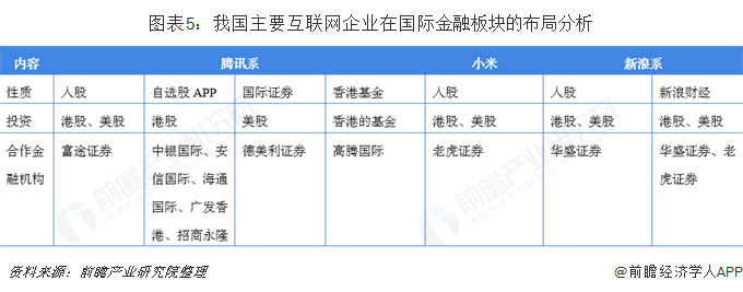 在互联网金融国际板块布局中,2018年,我国主要互联网企业纷纷关注港美股相关市场。如以腾讯为代表的富途证券,2018年12月29日,富途证券提交了赴美IPO招股书,12月3日在美国大型网络证券交易商德美利证券(TD Ameritrade)宣布与腾讯开展合作。