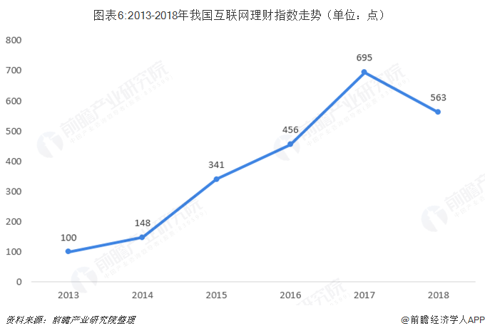 根据腾讯理财通发布的《2018年互联网理财指数报告》数据显示,在强监管及行业洗牌的态势下,中国互联网理财指数自2013年创建以来首次出现下滑。相比2017年,互联网理财指数从695点下降到了2018年的563点,降幅超过23%。