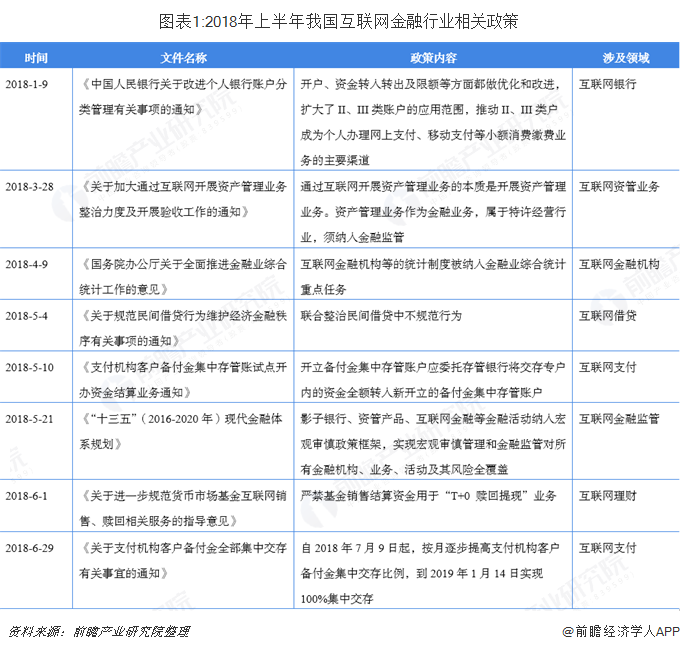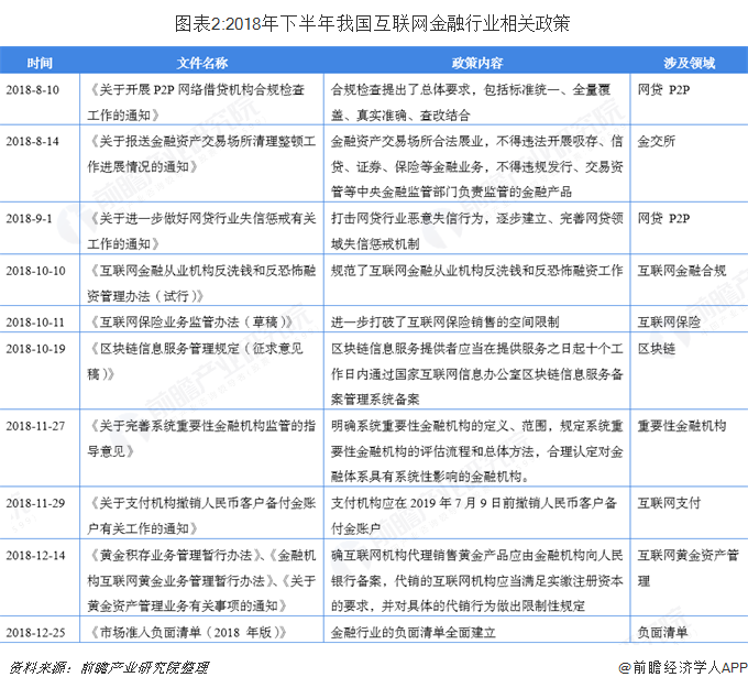 2018年,随着金融市场与宏观环境的变化,特别是行业内《资管新规》的落地,银行理财子公司纷纷在年底完成发起设立,金融行业的深化改革来到了深水区。对于互联网金融行业曾经的疯狂增长,从2017年以来,监管部门对于这种“野蛮式”的发展采取了降温、踩刹车等手段,备案制呼之欲出。2018年以来,互联网金融平台以及P2P暴雷不断,无论是中央还是地方机构,监管部门持续的高压监管,不少平台纷纷离场,第三方支付领域“强监管”态势未减,“断直连”加速推进,行业中部分业务风险敞口逐渐暴露,ICO、STO被禁,虚拟货币交易平台违规,区块链率先履行“备案制”,整个互联网金融行业被“寒冬”笼罩。