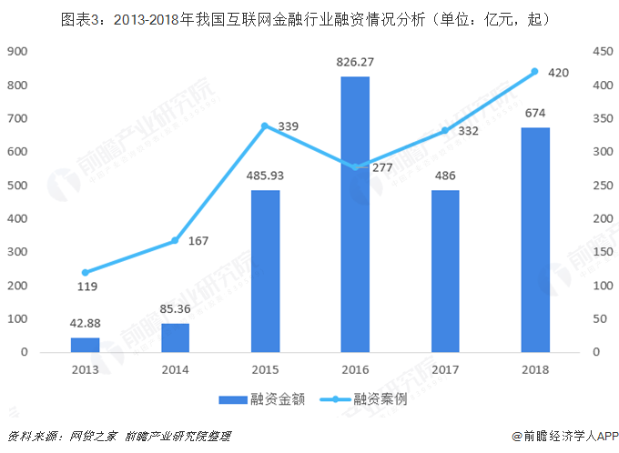 2018年以来,我国互联网金融平台以及P2P暴雷不断,无论是中央还是地方机构,监管部门持续的高压监管,不少平台纷纷离场,整个互联网金融行业被“寒冬”笼罩,但是尽管处在寒冬下,互联网金融行业的投融资市场热度不减,根据网贷之家数据显示,2018年我国互联网金融行业融资金额达到674亿元,发生融资案例420起。从新进者行业布局情况来看, 2018年,我国头部的互联网企业无论是在银行、证券、保险,还是在国际金融布局当中,都有着前所未有的进展。
