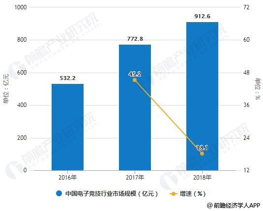 2、2018年中国电子竞技行业市场规模超900亿,用户规模超4亿人