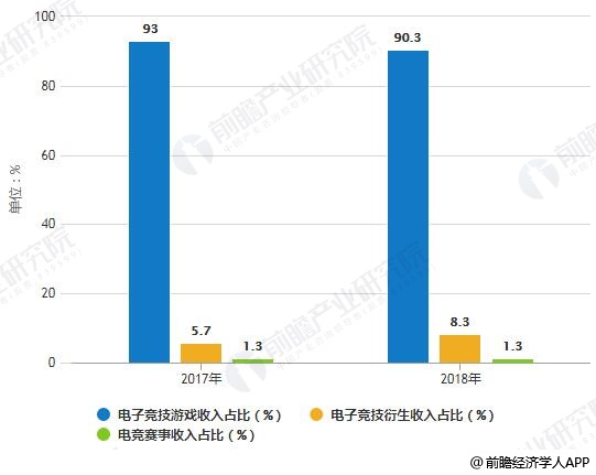 2017-2018年中国电子竞技行业收入结构占比统计情况
