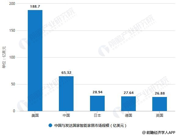 从国内市场来看,根据前瞻产业研究院发布的《中国智能家居设备行业市场前瞻与投资策略规划报告》统计数据显示,2017年中国智能家居市场规模约为65.32亿美元,2012-2017年年均复合增长率为38.87%,呈现极为迅速的发展态势。