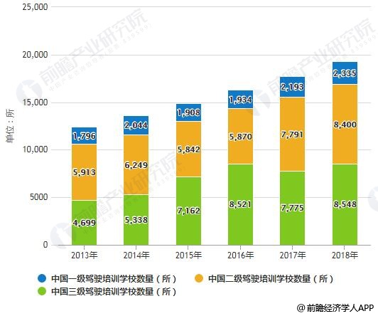 2013-2018年中国不同级别驾驶培训学校数量统计情况及预测