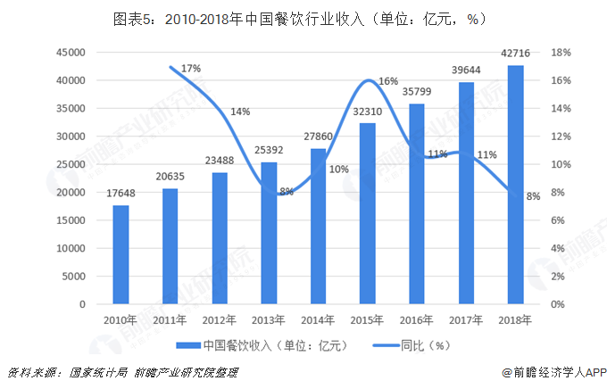 根据国家统计局公布的数据,全国餐饮收入从2010 年的17,648 亿元增长至2018 年的42,716 亿元,年均复合增长率达11.68%。餐饮业的快速发展,有力地拉动了厨房食品行业的市场需求。