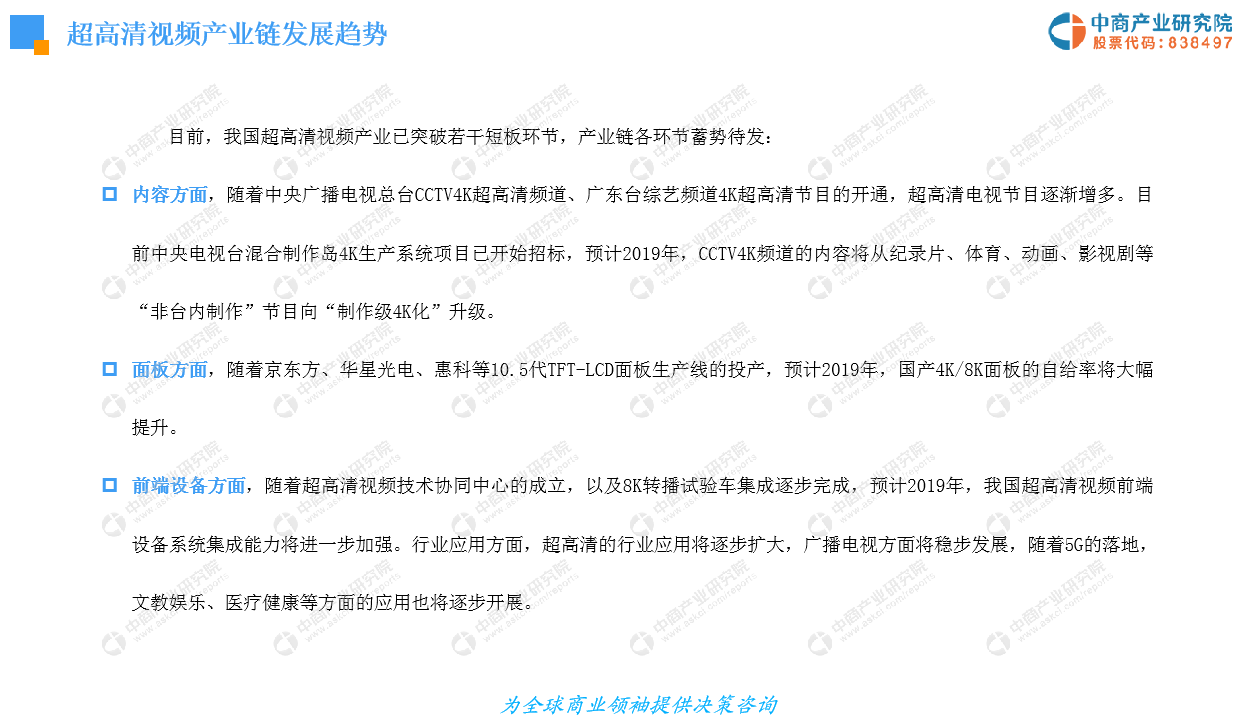 报告仅展示部分,详情请登录中商报告库下载《2019年中国超高清视频产业发展前景及投资研究报告》。