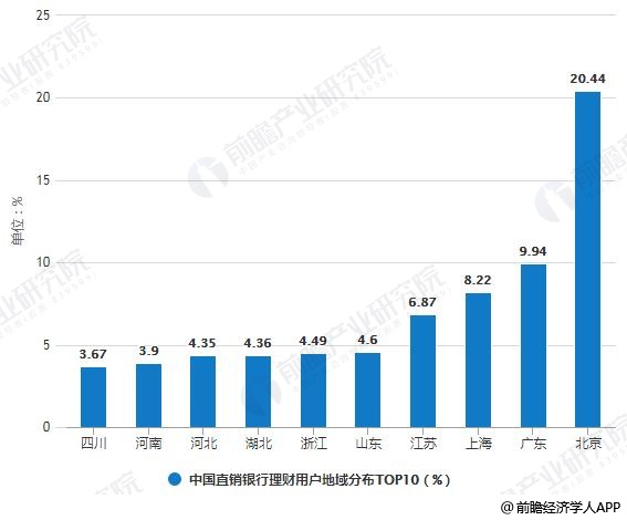2018年中国直销银行理财用户地域分布TOP10统计情况