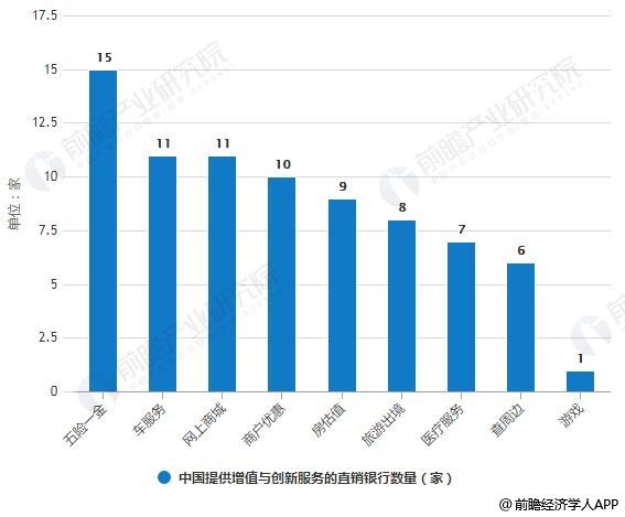2018年中国提供增值与创新服务的直销银行数量统计情况
