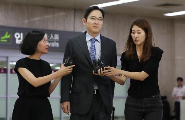 7月12日,结束日本出差的三星电子副会长李在镕通过金浦机场回国。 (图片提供 韩联社)