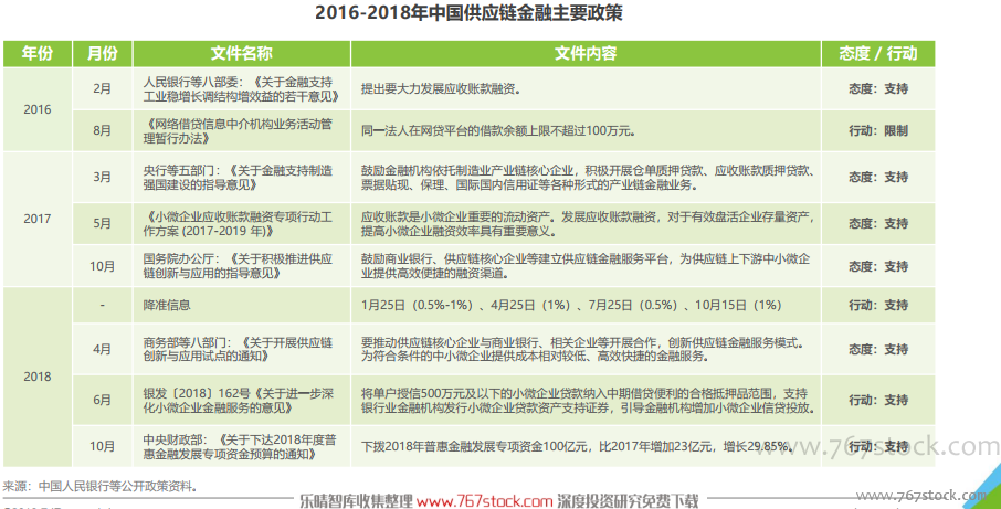 政策鼓励,业务开展存难:需创新业务模式打破僵局。“降准、支持银行业金融机构发行小微企业贷款资产支持证券”等政策在资金侧为开展供应链金融提供了方便,但业务侧仍面临风控难、中小微企业授信难等问题。目前需依靠新技术改变传统业务模式,降低风控难度的同时,并可借助核心企业信用帮助更多企业实现供应链融资。