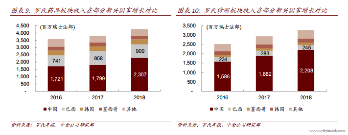 罗氏多款抗肿瘤创新药物在中国均为临床急用药。除了重磅创新药曲妥珠单抗和利妥昔单抗外销售良好外,阿来替尼于 2018 年在国内纳入医保。根据罗氏 2019Q1 季报,公司在中国区销售收入同比增长 63%,主要来自各类抗肿瘤药物的良好放量,其中便包括贝伐珠及 2018 年才纳入国家医保的阿来替尼。