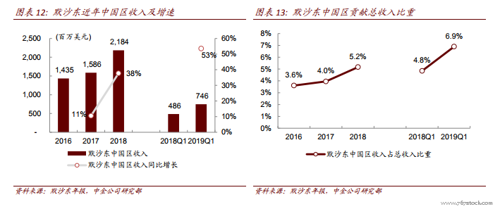中国区贡献总收入比重较低,但收入增速较快。默沙东中国区收入贡献近年来逐渐提升,且增速较快,但整体占比仍相对较低。就营业收入而言,默沙东中国区收入 2016-2018年 CAGR 约为 23.4%,远高于同期营业总收入 CAGR(约 3.1%)。此外,根据 2019Q1 季报显示,默沙东一季度中国区收入接近 7.5 亿美元,同比增长 53%(忽略汇率因素后增速约为 67%)。根据公司披露信息,一季度高速增长的主要因素是疫苗和抗肿瘤药销售增长。