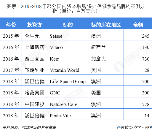 由于层出不穷的食品安全事故,国内消费者普遍对海外保健食品有更高的信任度,因此收购海外品牌成了各企业快速扩张的重要途径。