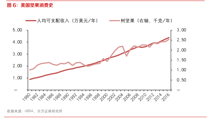 国内种子坚果市场发展较为成熟,自给程度高,树坚果则高度依赖进口。坚果是植物的精华,富含蛋白质、维生素等营养元素,对人体生长发育、增强体质、预防疾病有极好的功效。坚果可分为种子类坚果及树坚果两类,前者主要包括花生、瓜子,而后者包括核桃、碧根果、夏威夷果等。目前我国种子类坚果市场发展成熟自给率高,而树坚果仅有核桃国产供给充足,其余树坚果基本依赖进口。从市场规模看,树坚果单价高,但消费量极低,后续随着总量端的提升市场规模仍有较大增长空间。