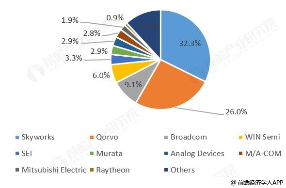 根据Strategy Analytics的研究报告,2018年全球砷化镓元件市场(含IDM厂商的组件产值)中,Skyworks的市占率最高,为32.3%,其次为Qorvo,市占率为26.0%。