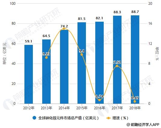 2012-2018年全球砷化镓元件市场)总产值统计及增长情况