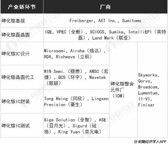 ——全球砷化镓产业链分工成熟
