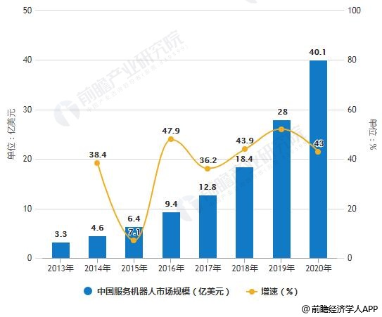 2013-2020年中国服务机器人市场规模统计及增长情况预测