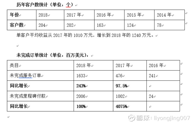 如果按照每年30个新增项目计算,按照较低的400万美金的服务价格计算,那么2019年收入还会增加4.08亿元,那么2019年的总收入为38.6+4.08=42.68亿元人民币。较2018年收入25.34亿增长68.4%。