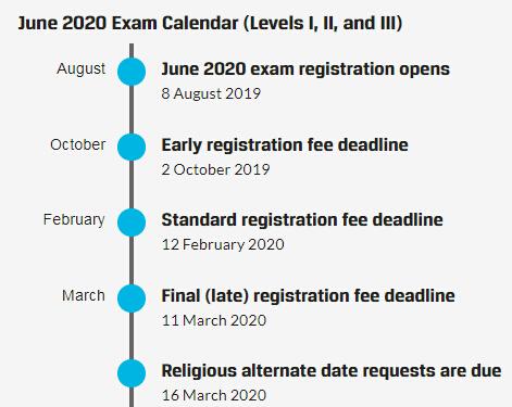 CFA考生注意:2020年6月CFA报名时间已公布!2020年6月CFA考试报名从2019年8月8日开始,结束日期为2020年3月11日!2020年6月CFA依旧举行三个级别的考试!
