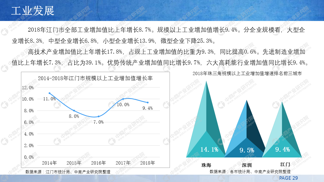 为了更好的了解江门市产业园的发展,中商产业研究院特推出《粤港澳大湾区专题—2019年江门市产业园投资前景研究报告》。报告从产业园概述、粤港澳大湾区产业园、江门市产业园发展环境、江门产业园发展现状、江门重点产业园区分析五大方面剖析江门产业园,最后总结目前江门产业园发展存在的问题,并进一步分析产业园的发展趋势。以下是报告详情: