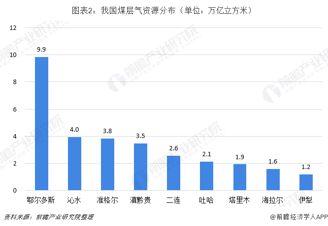 全国大于5000亿立方米的含煤层气盆地共有14个,其中含气量在5000-10000亿立方米的有川南黔北、豫西、川渝、三塘湖、徐淮等5个盆地,含气量大于10000亿立方米的盆地有9个:依次为鄂尔多斯、沁水、准格尔、滇黔贵、吐哈、二连、塔里木、海拉尔、伊梨盆地,9大盆地煤层气资源量占全国煤层气资源量的83%。