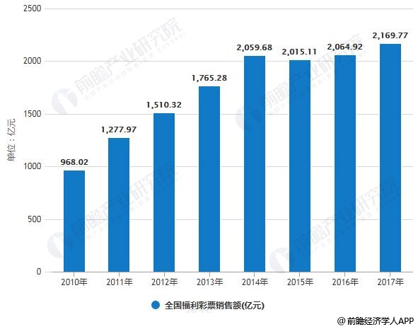 据前瞻产业研究院发布的《中国彩票业市场前瞻与投资战略规划分析报告》统计数据显示,2010年至2012年上半年,全国彩票销量保持20%以上的高速增长,为我国彩票市场的高速增长期; 2018年1-12月,全国累计共销售彩票5114.72亿元,达到历史新高,同比增加848.03亿元,增长19.9%。其中,福利彩票机构销售2245.56亿元,同比增加75.79亿元,增长3.5%;体育彩票机构销售2869.16亿元,同比增加772.23亿元,增长36.8%。这是自2014年以来,彩票销售额增长速度首次回升到18%以上,可以说,2018年彩票市场总体情况良好。