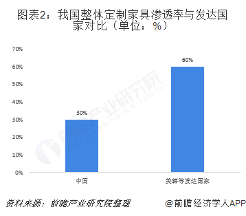 家具定制整体水平远低于发达国家,但定制橱柜渗透率较高