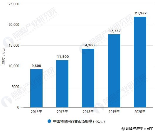 2016-2020年中国物联网行业市场规模统计情况及预测