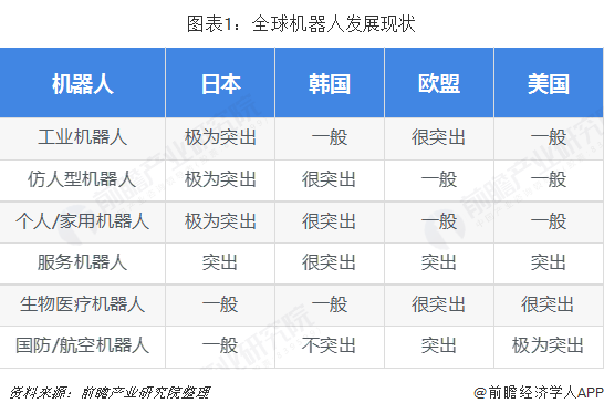 日本、德国的工业机器人水平全球领先,四大家族为全球主要的工业机器人供应商,这主要因为他们具备先发优势和技术沉淀。日本在工业机器人关键零部件(减速机、伺服电机等)的研发方面具备较强的技术壁垒。德国工业机器人在原材料、本体零部件和系统集成方面有一定优势。