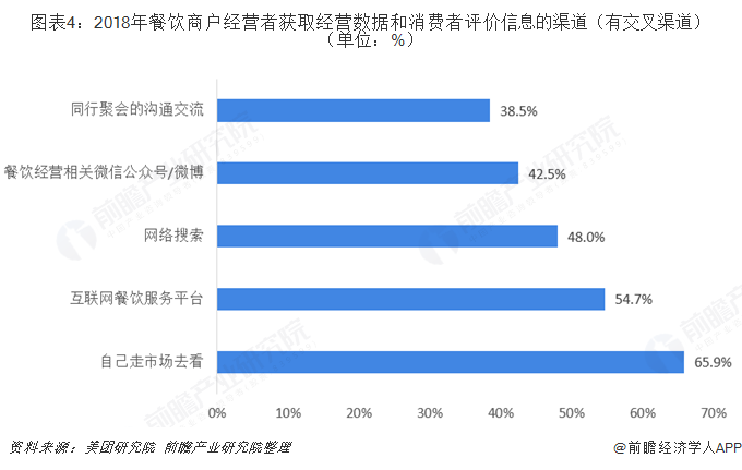 伴随着经济和社会的发展,国内消费者需要多样化、更加优质的服务,这就给服务线上业发展带来更多机遇。在移动互联网时代,餐饮商户经营者对店铺的经营信息以及消费者评价尤为关注,依据数据对经营状况进行分析并找出经营中存在的问题,达到及时调整和优化经营策略的目的。从商户经营者获取数据的主要渠道来看,互联网餐饮服务平台的占比为54.7%,成为众多餐饮商户经营者获取相关数据信息的主要来源。