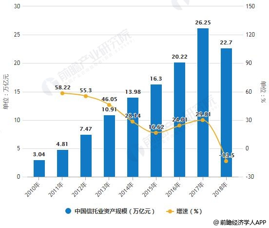 自1979年10月中国国际信托投资公司成立,我国信托业发展已近40年。中国信托业协会数据显示,截至2018年末,我国信托资产规模22.70万亿元,比2017年四季度末下降了13.50%。2019年一季度末信托资产余额为22.54万亿元,较上季末下降0.7%,降幅进一步缩窄。