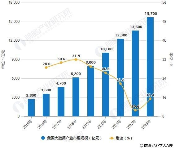 2015-2023年我国大数据产业市场规模统计及增长情况预测