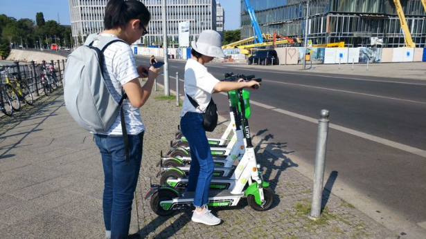 轻装后,我们前往柏林市区最大的公园。十几分钟的路程,我们一路感受德国首都的古老,也感受她的现代。街道很宽,看不到我们国内常见的门市,很多建筑都是用很低矮的绿化隔离。路边停放着很少的车辆和大量的自行车,也有电动的独轮车。独轮车可以扫码租用,每10公里1欧元,也算便宜。在国内这种车是不允许上路的。欧洲都是行人优先,在路口,你轻按一下按钮,汽车就会停下,让行人先行。