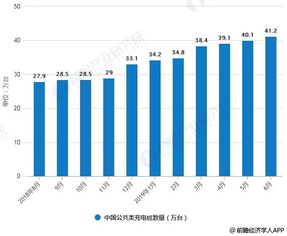 2018-2019年6月中国公共类充电桩数量统计情况
