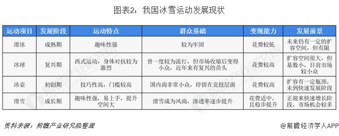 现阶段,我国雪上项目和冰上项目,呈现出了不同的发展特点。滑冰运动和滑雪运动具备较为牢固的群众基础,在消费者群体中认可度较高,尤其是滑雪运动,在居民消费水平稳步提升的情况下,滑雪运动的渗透率逐渐升高,且随着客户群体的不断增多,人均消费价格也逐渐上升,2018年,我国滑雪运动人次数达到了1970万人次,且保持高速增长趋势,未来滑雪运动的市场空间较大。