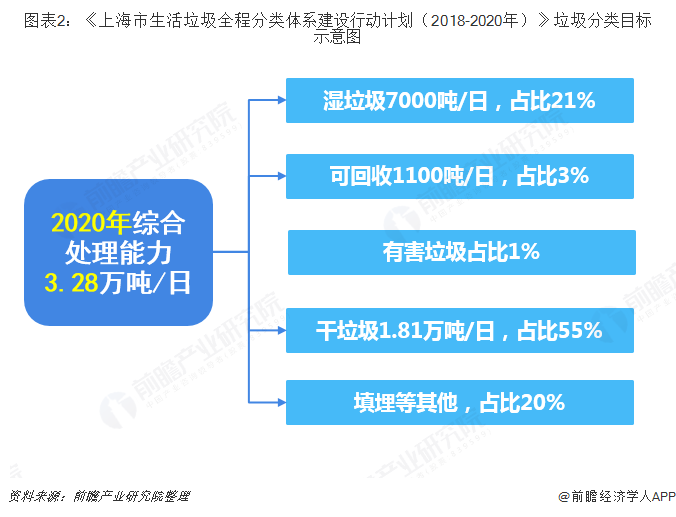 因此随着该项文件在全国46个城市的不断实施,我国干垃圾末端的处理量将不断减少,相反湿垃圾的分类处理量、可回收物资源回收利用量相应增加。以上海为例,如果全面实行垃圾分类,湿垃圾分离量可能有更大的增长,而到目前湿垃圾处理设施实际投运规模极小。根据《上海市生活垃圾全程分类体系建设行动计划(2018-2020年)》,2019年上海全市湿垃圾处理能力要达到4300吨/日;到2020年全市生活垃圾综合处理能力要达到3.28万吨/日以上,其中湿垃圾处理能力要达到7000吨/日。