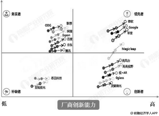 Google在2012年推出Google glass率先引爆市场,后Google glass受限于技术及隐私问题,项目暂停,但Google继续深耕AR通用技术、AR设备和AR开放平台,并推出ARCore开放平台,通过基层架构的布局,Google在VR市场占据领先地位。
