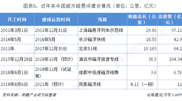 清远磁浮旅游专线于2017年12月开建,预计2019年10月开通运营;成都中低速磁浮线路于2018年6月开建,预计在2019年12月试运营;凤凰磁浮线于2019年8月开建,预计于2021年完工。