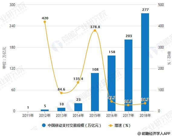 而从我国金融科技的应用领域来看,中国金融科技服务在移动支付、网络信贷等领域发展最为突出,预计仍将是未来几年行业的发展趋势。在移动支付领域,以手机支付为代表的新型移动支付已经成为中国消费者应用最普遍的支付方式,号称中国“新四大发明”之一。我国移动支付持续保持快速增长态势,在支付宝、微信等支付方式普遍流行的背景下,2018年我国移动支付交易规模达到277.4万亿元,较2017年增长了36.7%,位居全球首位。