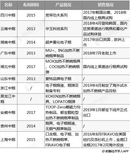 目前,我国中烟公司旗下已经通过自主研发或合作方式开展新型烟草领域的布局,但是受到国家政策的限制,加热不燃烧产品不能在国内进行销售,仅可在自营店进行品吸或者烟具试用,因此多家企业成功试水海外市场。目前我国中烟旗下已有7家公司在新型烟草领域取得了良好进展,同时加热不燃烧产品向韩国、欧洲、东南亚地区进行出口销售。